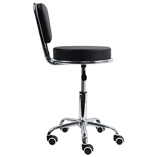 KKTONER Sgabello con Schienale Basso in Pelle PU Cuscino Moderno Regolabile in Altezza Sedia a rotelle per Ufficio a casa Colore Nero