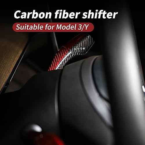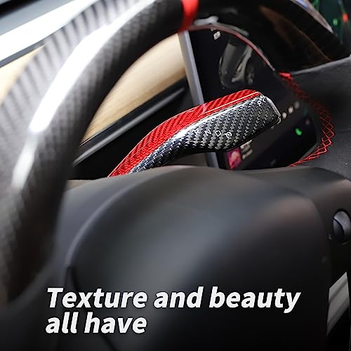 KKTR-CAR Tesla Model 3 Model Y Cambio Copertura, Copertura Della Leva di Sterzo in Fibra di Carbonio, 2017-2023 Interni Protezione Leva Copertura Accessori 2 PCS (Rosso Fibra di carbonio)