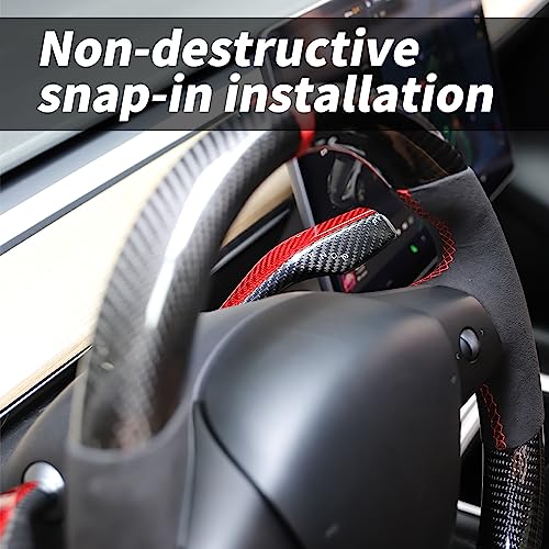 ✔️【FACILE DA INSTALLARE】 KKTR-CAR Tesla copri leva del cambio viene fornito con nastro adesivo, staccare il nastro quindi mettere il copri leva del volante Model 3/Y sulle palette del cambio originale e si adatta perfettamente