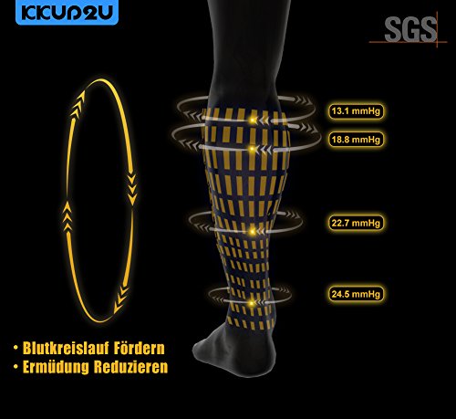 Materiali di alta qualità: i calzoni di compressione di KKUP2U sono realizzati in tessuto di qualità superiore, traspirante e resistente. Lo Spandex aiuta a mantenere la pressione graduata da piede ai polpacci grazie alle sue caratteristiche di compressione superiori, evitando quindi le tracce di strain e shin. I nostri manicotti di compressione vengono testati in maniera estesa per assicurare la compressione graduata ottimale in tutti i punti