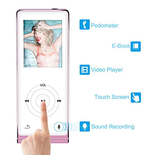 KlangTop MP3 Lettore 8G Supporta Fino A 64GB Lavora Oltre 50 Ore Lettore MP3 Musicale Portabile Multifunzioni Video Player FM Radio Voice Record Player Etc Colore ROSA