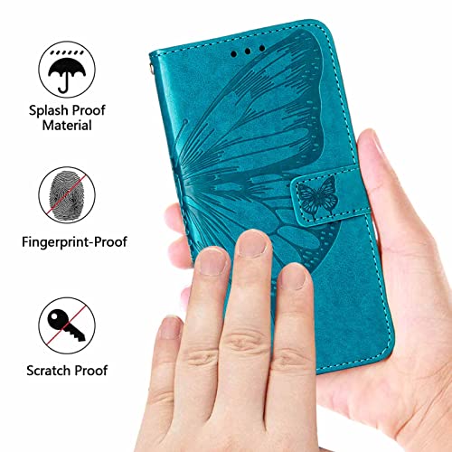 Klapber Custodia per Vivo Y33s Y21s, Cover Vivo Y33s Y21s Custodia in Pelle Goffrata Farfalla, Portafoglio con Slot per Schede e Magnetica Morbida Silicone Custodie Vivo Y33s Y21s, Blu