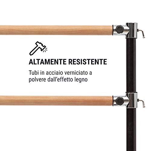 ROBUSTA: Con un'altezza regolabile fino a 113 cm, la barra consente a insegnanti e studenti di esercitarsi insieme. Robusta, completamente in tubi d'acciaio e verniciata a polvere con effetto legno.