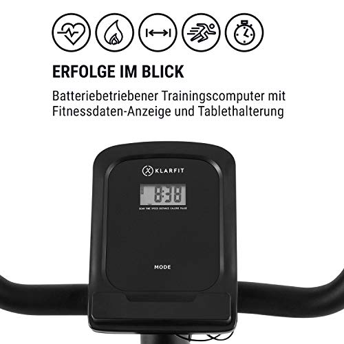 Klarfit Tauon - Cyclette, Cardiobike, Cyclette da Camera con Display LC, MagResist: Resistenza Magnetica con 8 Livelli, Porta Tablet, Silenziosissima, Computer di Allenamento, 100kg max, Nero