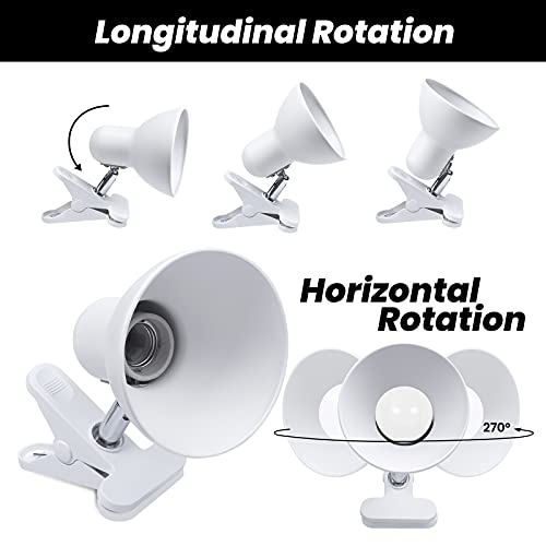 Klarlight Lampada a Morsetto E27 Bianca Portalampada E27 con Clip, EU Spina e Interruttore, vite Edison Lampada da Tavolo, Girevole a 270°, AC 85-265V, Cavo da 1.8m (Senza Lampadina)