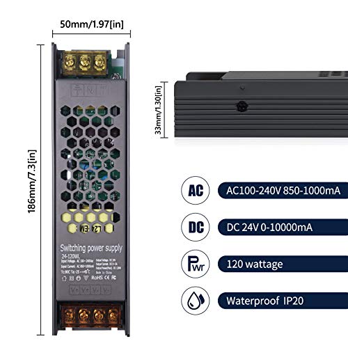 Klarlight Trasformatore LED DC 24V 120W AC 100V-240V 5A Trasformatore a Bassa Alimentatore Convertitore di Commutazione Adattatore Slim Driver Interruttore Regolato Illuminazione Esterna