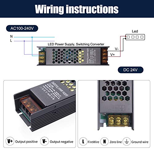 【Parametro】- Potenza elevata 120W, 5A, Ingresso: AC 100-240V, Uscita: Convertitore di commutazione CC 24V. (Tensione più ampia di 12V, ideale per grandi progetti di elettricità all'aperto).