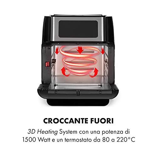 KLARSTEIN AeroVital Fry - Friggitrice ad Aria Calda, 3D-heating System: 1500W, Volume XL: 10L, 9 Programmi, Cool Touch Housing, Timer 60 Min, Termostato: fino a 220°C, Pannello Touch, Nero/Argento