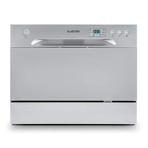 Klarstein Amazonia 6 - Lavastoviglie Piccola da Tavolo, Mini Lavastoviglie, Portatile, 1380 Watt, 6 Coperti, 6 Programmi, Risparmio Energetico, Bassa Rumorosità, Pannello di Controllo Smart, Argento