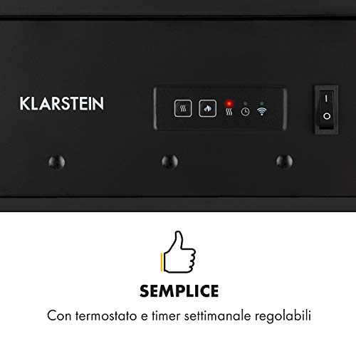 Klarstein Camino Elettrico, Caminetto Elettrico 1900 W, Camino Finto a Riscaldamento Elettrico a Basso Consumo, Fuoco Finto LED, Spazio per Legna, Termocamino con Telecomando, Termostato e Timer
