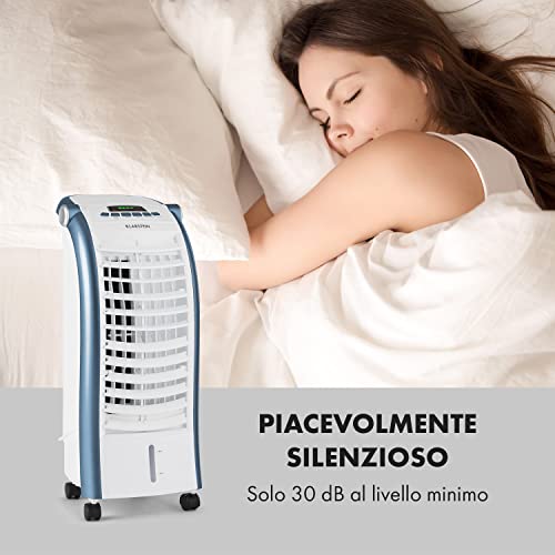 Klarstein Condizionatore Portatile Senza Tubo 65 W, 4 in 1, Umidificatore, Climatizzatore Portatile Silenzioso con Night Mode, Ventilatore Aria Fredda, Raffrescatore, Flusso 444m³/h, Serbatoio 6L