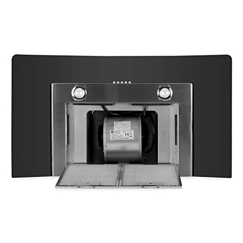 Klarstein GL90WSB Cappa Aspirante con rivestimento in vetro e acciaio inox (90 cm, potenza di aspirazione pari a 385 m³/h, 3 livelli di potenza, design accattivante) - argento/vetro scuro