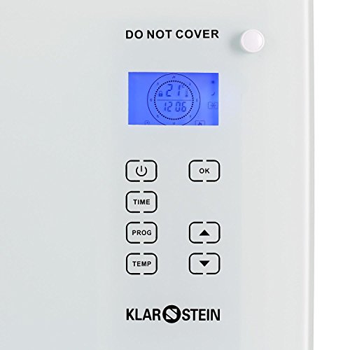 Klarstein HT006GL - Riscaldamento elettrico, Riscaldamento a convezione, 1000 W, Vetro sicurezza, Touch screen a LED, Varie impostazioni di calore, Timer, A prova bambini, Bianco