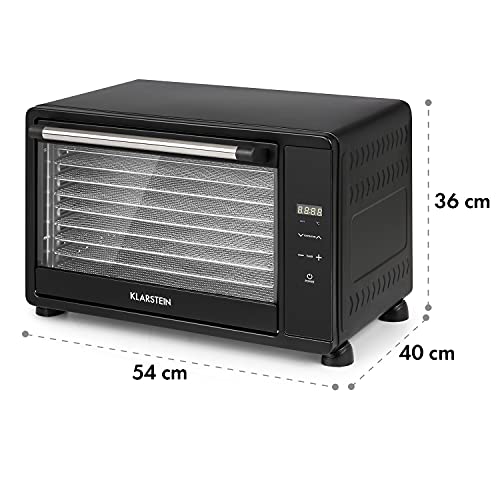 KLARSTEIN Mega Jerky Essiccatore - 650 Watt, Alloggiamento in Metallo, 10 Ripiani, 50-80 C°, Display Touch LC, Timer fino 24h, Resistenza in Acciaio Inox, HotAir Circulation System, 45 L, Nero