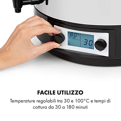 KLARSTEIN KonfiStar Digital - Pastorizzatore, Distributore Bevande, 2500 Watt, 30-100 °C, Timer, Funzione di Mantenimento Calore, Coperchio con Chiusura, Acciaio Inox, 50 Litri, Argento