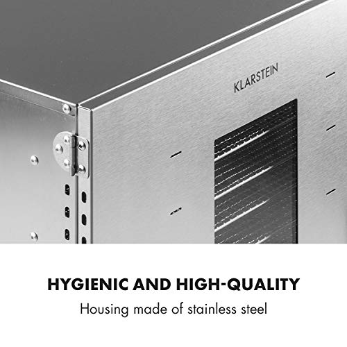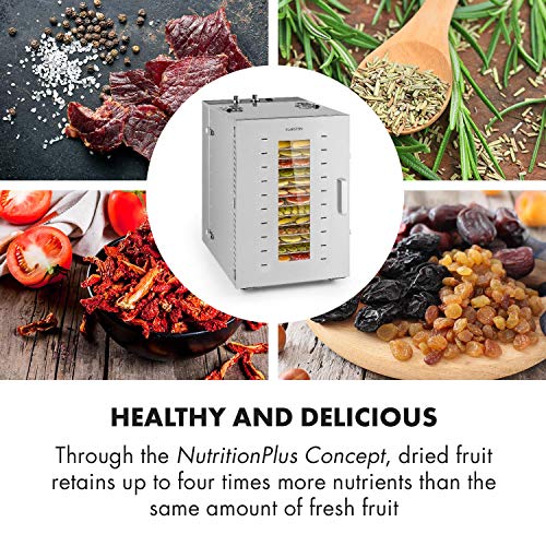 KLARSTEIN Master Jerky - Essiccatore Professionale, Essiccatore Alimentare, Temperatura:40-90 °C, Timer 15h, Controllo DigiSet, Acciaio Inox, 4-20 kg di Frutta, 1500W, 16 Inserti, Argento