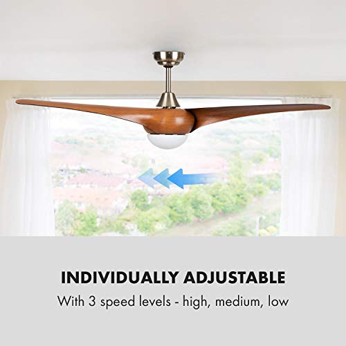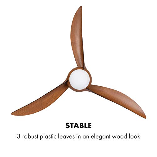 Klarstein Monteverde - Ventilatore a Soffitto, 2in1: Ventilatore & Lampadario, Diametro: 52" (132 cm), 3 Pale di Plastica, Flusso d'Aria: 8.376 m³/h, Lampadario, Timer, Marrone Scuro