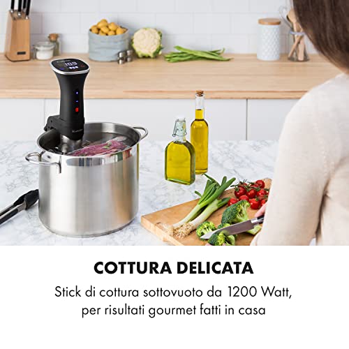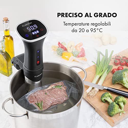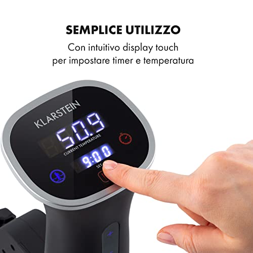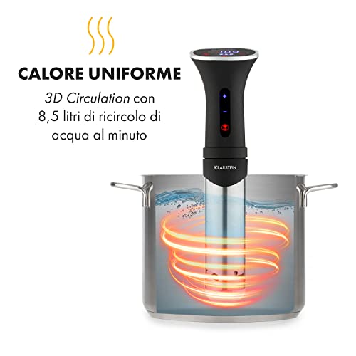 KLARSTEIN Quickstick Smart - Circolatore per Sous Vide, 3D Circulation, Controllo con App, Display Touch, Temperature: 20-95 °C, Timer, 1200 Watt, Volume: 10-15 L, Immersione Minima: 11 cm, Nero