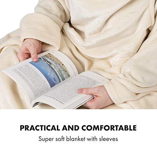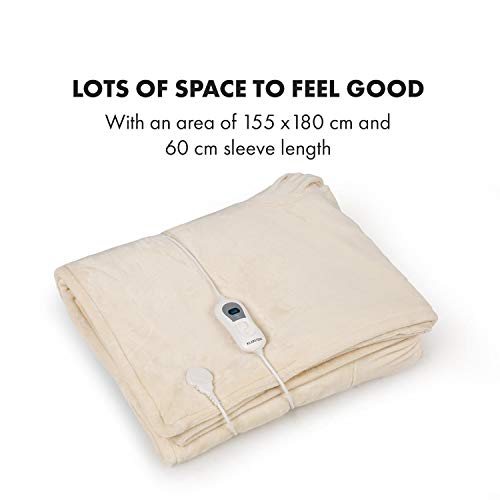 KLARSTEIN Slanket - Coperta Termica, Morbida Coperta con Maniche, Potenza: 120 Watt, 155 x 180 cm, 3 Livelli di Potenza, Lavabile, Lunghezza Cavo: 230 cm, Materiale: Coral Fleece, Beige