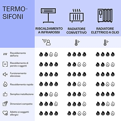 IL SOLE A CASA TUA: Questa stufa infrarossi riesce a utilizzare il 98% del calore prodotto, molto più dei termosifoni convenzionali, portando il comfort a casa tua in maniera energeticamente efficiente e con quasi nessuna perdita di trasferimento.