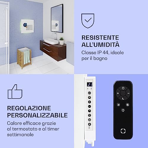 CON PROTEZIONE IP44: Grazie alla protezione da acqua e polvere IP44 puoi goderti questa stufa elettrica in tutta la casa. Usala come riscaldamento da bagno per extra comfort dopo la doccia. Include termostato e il necessario per il montaggio.
