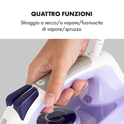 KLARSTEIN Steam Bro - Ferro da Stiro a Vapore, 2200 W, Serbatoio: 300 ml, EasyGlide: Piastra in Nano-Ceramica, TouchSensor, Vapore: 20-30 g/min, Impatto Vapore: 150-180 g/min, Funzione Spray, Viola