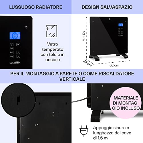 Klarstein Stufa Elettrica Basso Consumo, Stufa Elettrica 1000W, Termoconvettore, Termosifone Elettrico Portatile, Termoconvettore a Parete con Termostato, Stufetta Elettrica per Casa