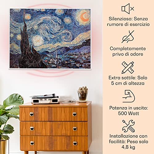 KLARSTEIN Wonderwall Air Art Smart - Pannello Radiante Infrarossi, Radiatore di Calore, 80 x 60 cm, 500 W, 10 m², Wi-Fi: App Control, Silenzioso, Design: Notte Stellata