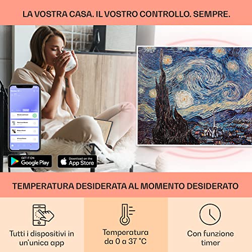 CONTROLLA VIA APP: Imposta la temperatura desiderata direttamente dall'app con il tuo smartphone. Puoi persino programmare l'accensione del riscaldatore a infrarossi in determinati orari per risparmiare energia e trovare la casa calda al tuo ritorno.