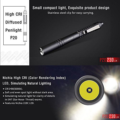 Klarus P20 Torce Utilizzo di Nichia 219C LED High CRI Il lumen massimo è di 230 lumen con 2 * torcia batterie AAA Ideale per medici e meccanici EMT e tecnici escursionismo e campeggio