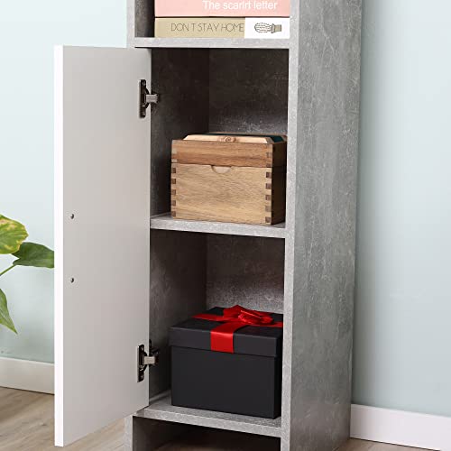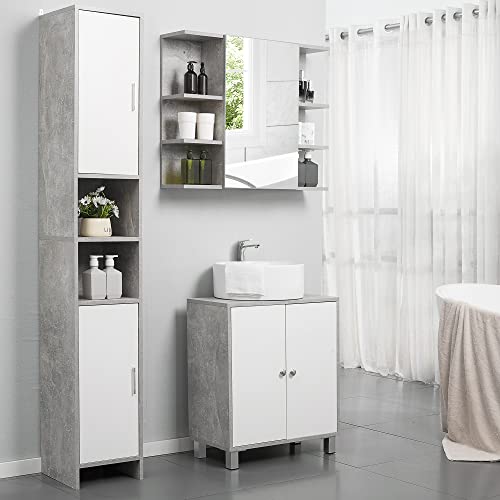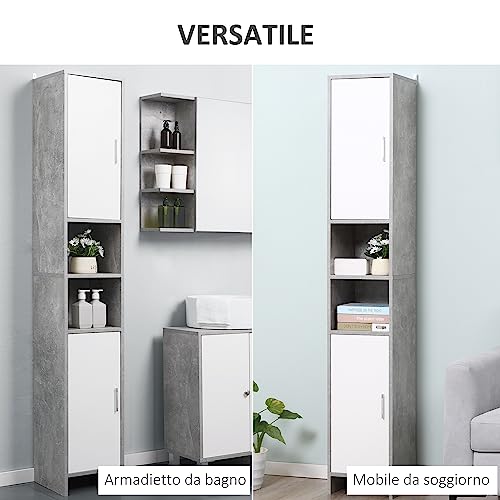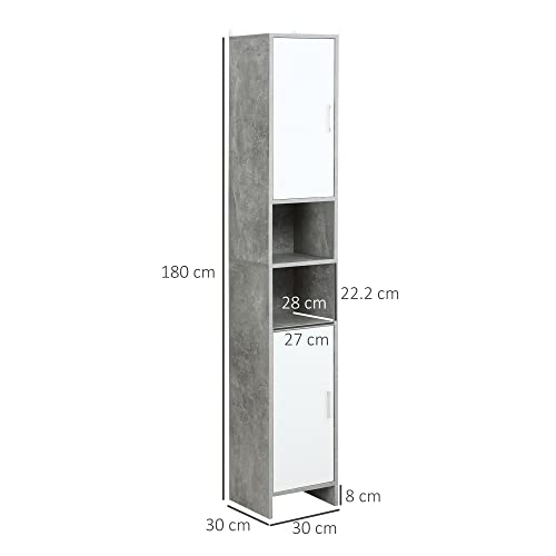 Kleankin Colonna Bagno con 2 Armadietti e 2 Vani Aperti, Mobiletto Salvaspazio Alto in Legno Effetto Cemento, 30x30x180cm, Grigio