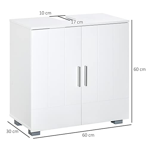Kleankin Mobile Sotto Lavabo Bagno Salvaspazio a U con 2 Ante e Ripiano Interno Regolabile, 60x30x60cm, Bianco