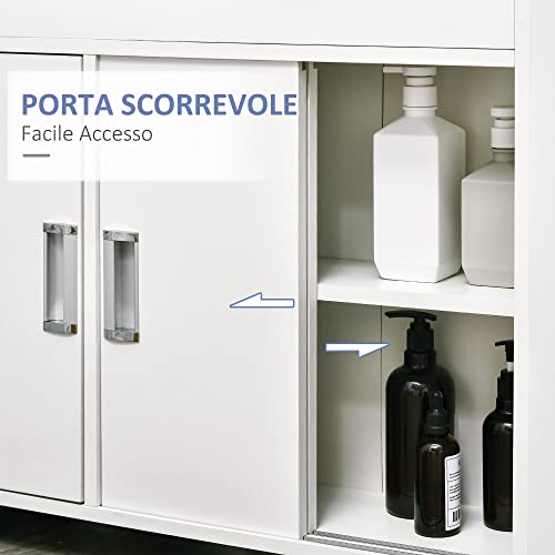 Kleankin Mobiletto Bagno con Porte Scorrevoli, Ripiano Regolabile e 4 Ruote in Truciolato e Lega di Alluminio, 70x20x71cm, Bianco