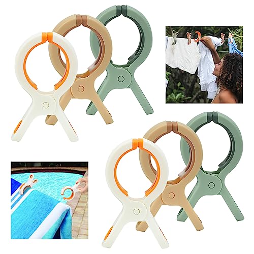 Kleemeiero 6 Pezzi Pinze Telo Mare Mollette Telo Nare Mollette per Bucato Mollette Grandi Multicolore Grandi Mollette da Spiaggia Trapunte, Biancheria da Letto, Tende, Vestiti (Verde, Bianco,Rosa)