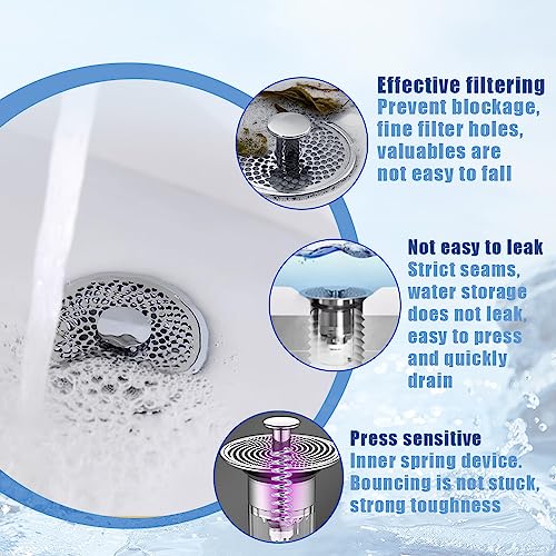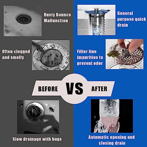 ✅【Design a molla】Il tappo lavandino bagno universale per lo scarico del lavandino è dotato di un design a pulsante che chiude e apre lo scarico in qualsiasi momento con un semplice clic! Non si ribalta quando si preme il pulsante, si adatta perfettamente, sigilla l'acqua e scarica rapidamente, così non dovrete preoccuparvi di perdite e odori.