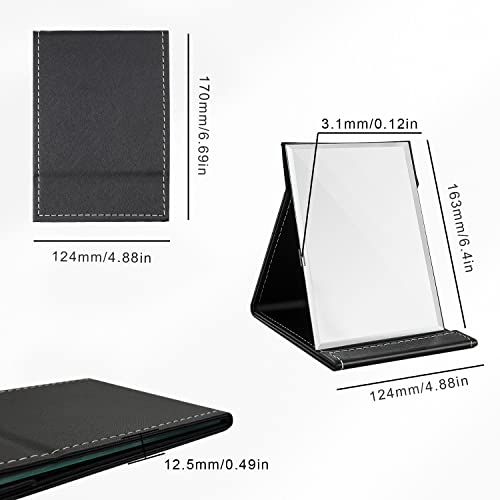KLEHOPE Specchio Braccio Pieghevole Specchio da Viaggio, Specchio Portatile 173mm x 123mm, Specchi da Tavolo con Custodia in Pelle PU Nera - Ottimo per i Viaggi e l'uso Domestico