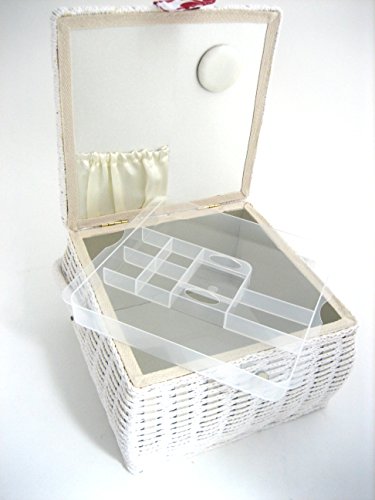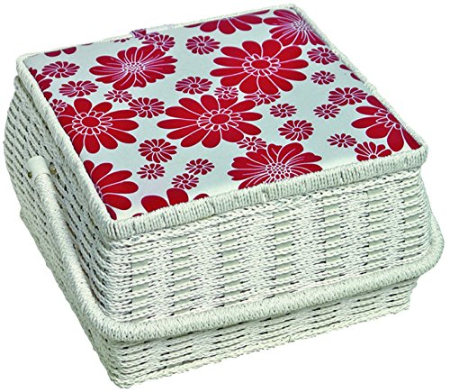 Kleiber - Cestino da Cucito in Vimini a Stampa Floreale 27 x 27 x 17 cm con Vassoio Interno, Rosso
