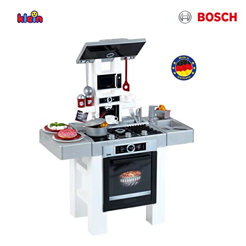 Questa ampia cucina che ricalca il modello Bosch ha tutto ciò di cui i piccoli chef hanno bisogno per cucinare nella loro stanza: Piano cottura e macchina per caffè con luci e suoni, cappa aspirante e tantissimi accessori