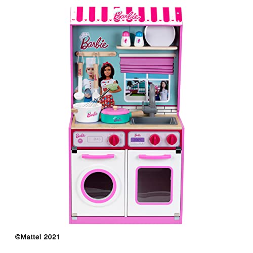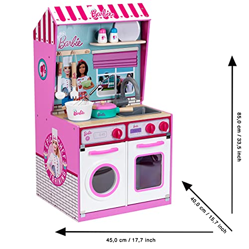 Theo Klein 7330 Cucina con casa delle bambole integrata Barbie, 2 in 1 I Cucina in lengo con piano cottura, lavatrice e accessori I Per bambini dai 3 anni in su