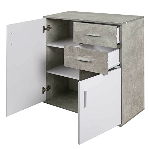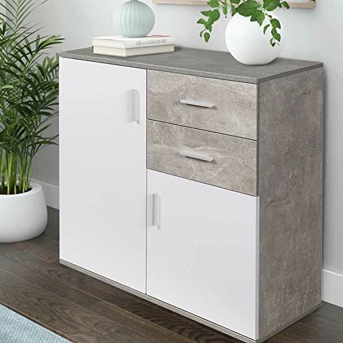 KLESIA Mobile Credenza Madia 2 Ante e cassetti multiuso per cucina bagno soggiorno dimensione Dimensioni 82x35x80cm (Cemento)
