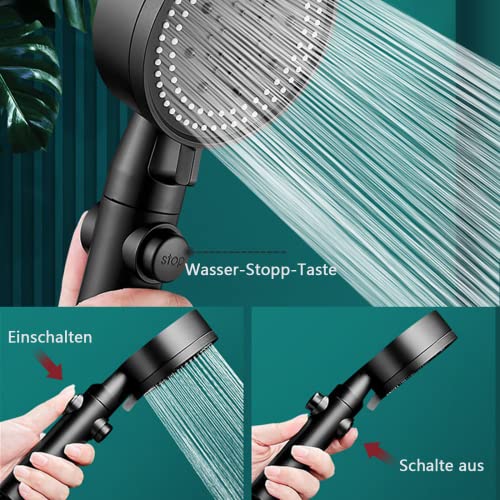 KLGFI Soffione doccia a risparmio idrico con tubo, tubo da 1.5 m per soffione doccia con stop d'acqua, colore nero, soffione doccia ad alta pressione, doccetta per bagno