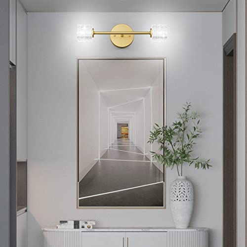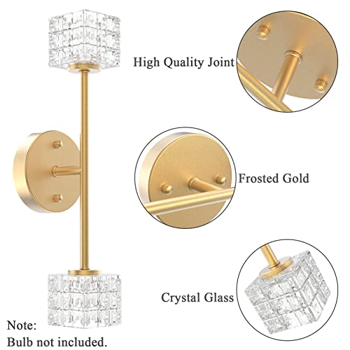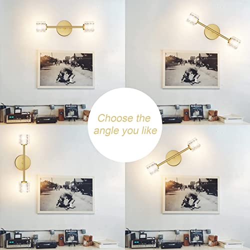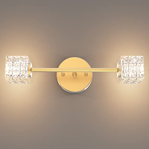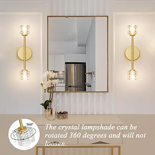 Klighten Lampada da Specchio Bagno di Cristallo Vintage con 2 Luci, 40CM Retro Applique da Bagno in Cristallo, Oro Luce Specchio Bagno, G9 Applique da Parete Interno in Ferro, Lampadina non Inclusa