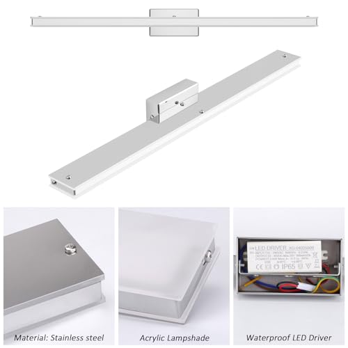 Klighten Lampada da Specchio Bagno Led 60cm, 20W Luci per Specchio Bagno Moderno, IP44 Applique da Specchio Bagno, 2000 LM, 110-240V, Bianco Caldo 3000K, Cromo