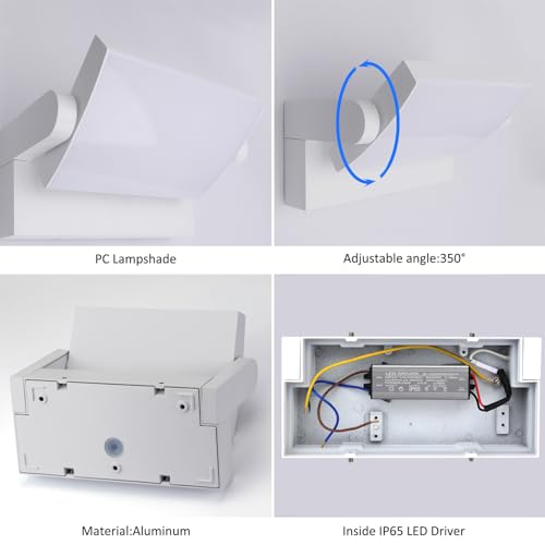Klighten 24W Lampade da Parete LED Esterno Interno IP65, Lampade Esterno Orientabile Applique Moderno da Parete in Alluminio per Corridoio Ingresso Giardini, Bianco Caldo 2700K-3000K, Bianca