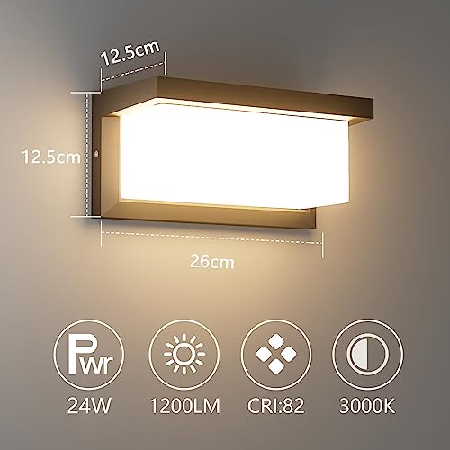 【Specifiche del prodotto】Lampada da parete per esterni a LED lunga 26 cm, dimensioni: 12,5x12,5x36cm, potenza 24W, bianco caldo 3000K, 2 luci da parete in 1 pacchetto.