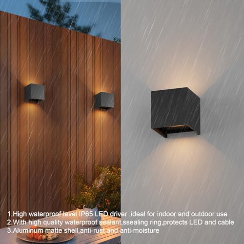 Klighten 2 Pezzi 7W Applique da Parete Esterno/Interno 3000K Bianco Caldo Applique Esterno Angolo del Fascio Regolabile Moderno Lampade da Parete IP65 Impermeabile Nero Aapplique da Esterno