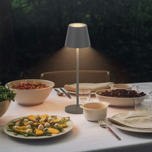 Klighten 2 Pezzi Lampada LED Dimmerabile da Tavolo, Ricaricabile Luce calda 3000K Lampada da Scrivania in Alluminio, H38cm, Grigio Scuro, IP54, con Base di Ricarica Contatt, per Interni/Esterni