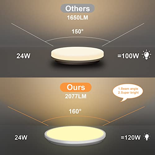 【Risparmio energetico】La plafoniera è realizzata con perle di lampada LED di alta qualità a lunga durata, bianca calda da 24W 3000K, in grado di sostituire due tradizionali lampade a incandescenza da 50W, con un risparmio di oltre l'85% della bolletta elettrica.