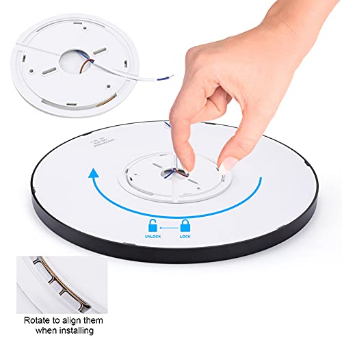 【Facile da installare】1. A seconda delle dimensioni della piastra di montaggio, praticare 3 fori nel soffitto. 2. Collegare il cavo corretto al circuito elettrico domestico. 3. Fissare la piastra di montaggio al soffitto con 3 viti. 4. Allineare la lampada con la posizione della piastra di montaggio e ruotarla in senso antiorario per fissarla alla piastra di montaggio.