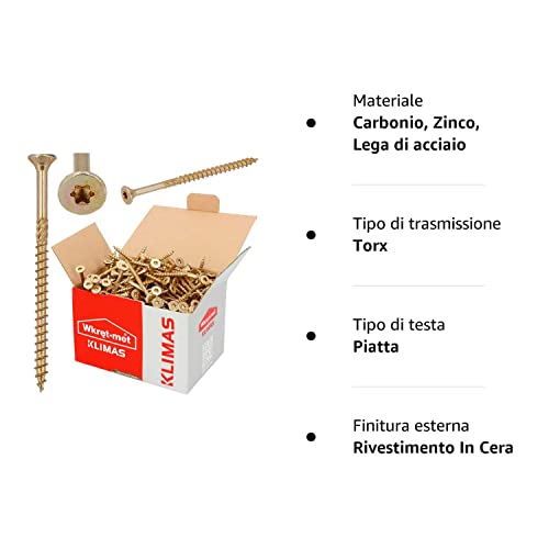 KLIMAS - Viti per legno Torx, 5,0 x 10 mm, 200 pezzi, viti truciolari, viti a testa svasata per terrazze, viti universali, per montaggio a tetto, set TX giallo
